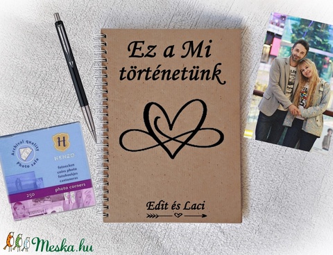 Szerelmes fényképalbum, napló, könyv rusztikus stílusban- A5 méret, Valentin nap,házassági évforduló, eljegyzé