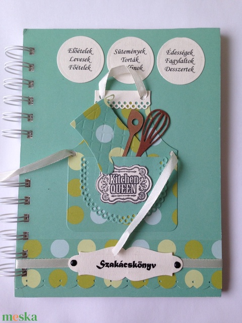 Szakácskönyv/receptkönyv - kötény díszítéssel - lánybúcsú, szakácstanuló - esküvő - versenyajándék - csoportajándék