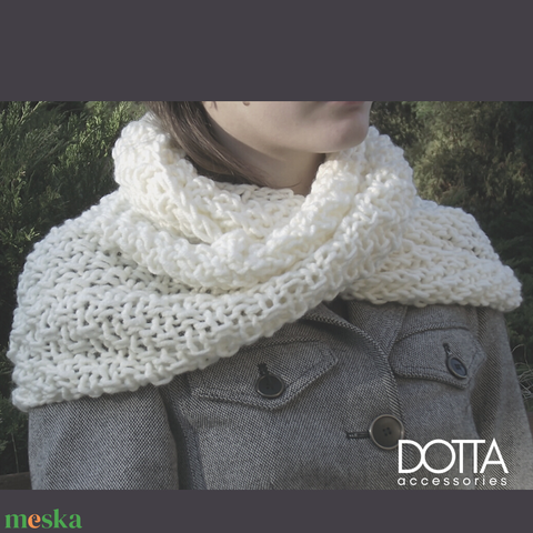 Kötött körsál - vastag meleg puha gyapjús fonalból - natúr színű téli sál - Kincső modell