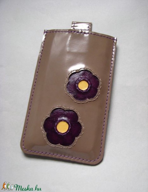 Barna lila virág mintás bőr telefontok/ mobiltok