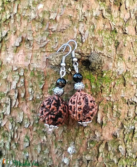 rudraksha termések, onix gyöngyök, fémalkatrészek