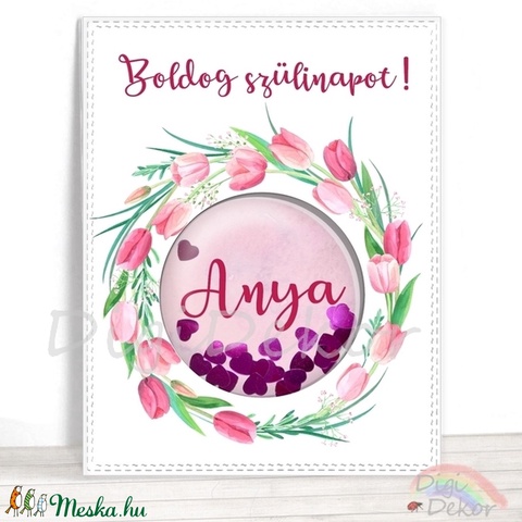Shaker képeslap születésnapra, anyák napjára, szülinapi ajándékkísérő, tulipános kártya, kézzel készített képeslap