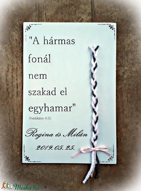 Kötélceremónia, esküvő ,egyházi, polgári ceremónia, világos szürke,fa szöveges falikép, nászajándék,szerelem, életfonal