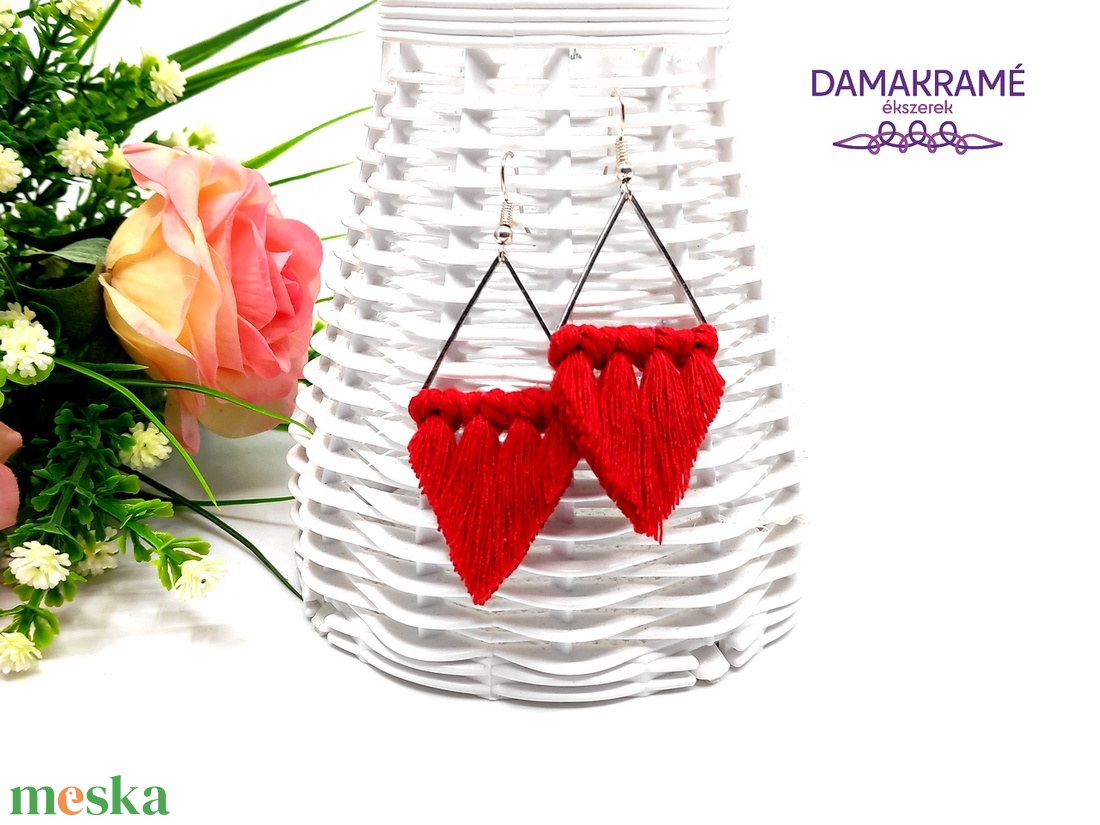 Lustre makramé fülbevaló - piros