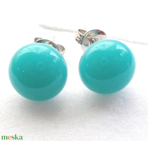 Türkizkék üveg fülbevaló, ajándék lányoknak, nőknek névnapra,születésnapra.