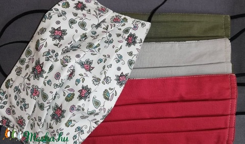 "Ildi" virágos-khaki, 3 rétegű maszk