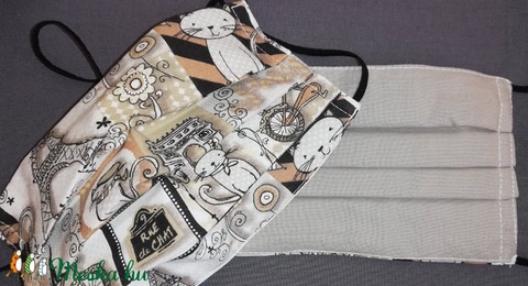 cicás, párizsos-homok, sötétszűrke 3 rétegű maszk