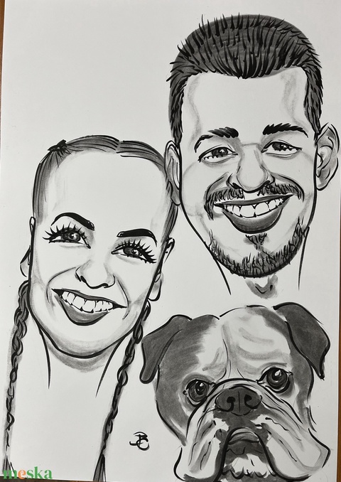 3 fős családi karikatúra