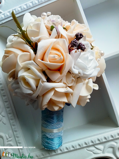 Egyedi, kézműves "valami kék" menyasszonyi örökcsokor