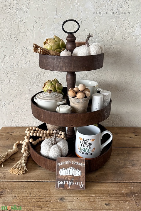 Három emeletes vintage kínálótál - farmhouse sütitartó, tortatál, tálaló