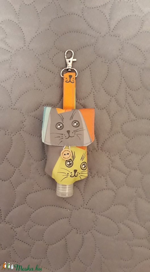 Táskára erősíthető cicamintás kézfertőtlenítő tartó