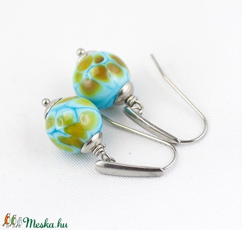 Türkiz mozaik -egyedi lámpagyöngy fülbevaló