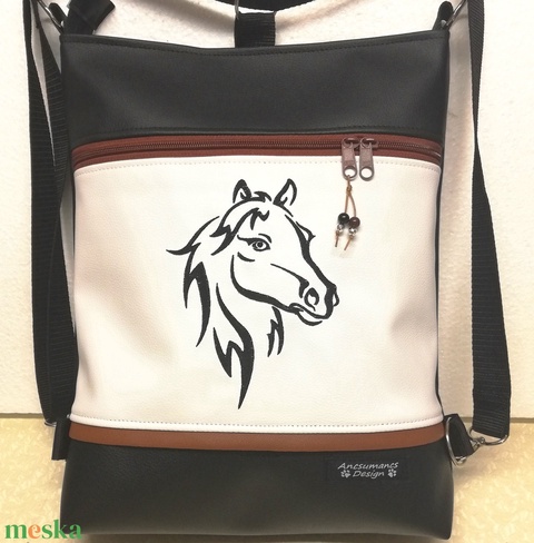 3in1 hímzett lovas női hátizsák divattáska oldaltáska fekete-fehér