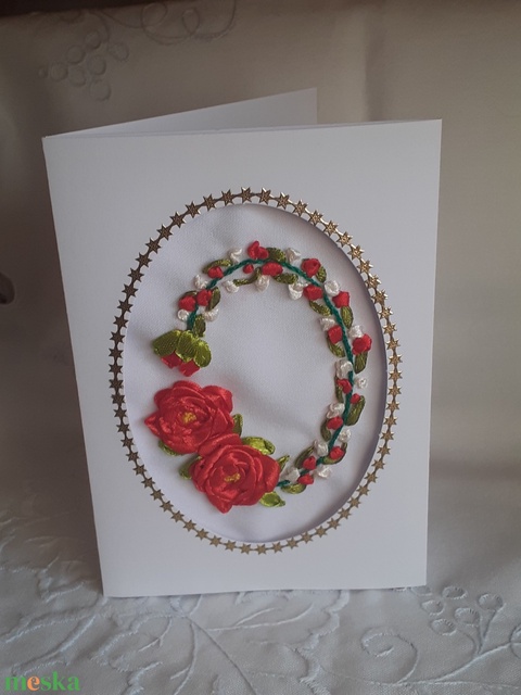 - Anyaga: textil, himzőfonal, szaténszalag, papír, ragasztó, kontúrmatrica