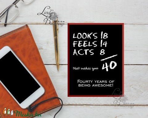 40. Szülinapi üdvözlőlap, Születésnap, 40, Vicces Születésnapi képeslap, Szülinap kártya, Apa, Apu, happy birthday
