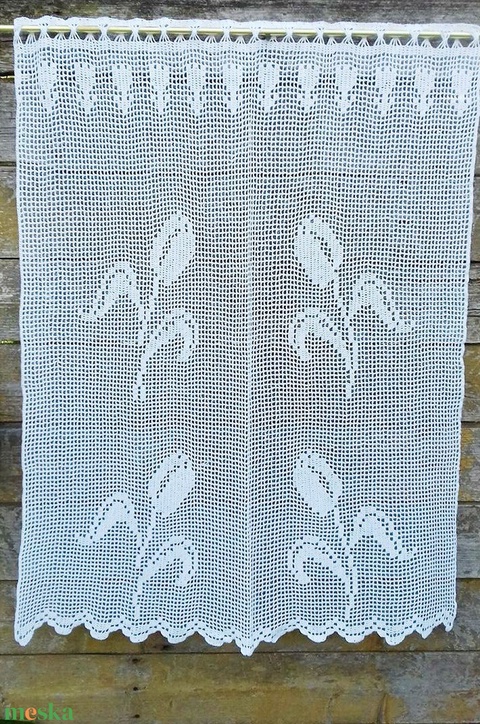 Tavaszi tulipán özön-fehér horgolt rece csipke függöny.