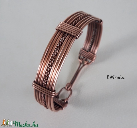 Antikolt vörösréz karperec egyedi, kézműves, drótékszer, réz ékszer