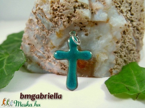 Kereszt - tűzzománc kereszt medál - türkiz