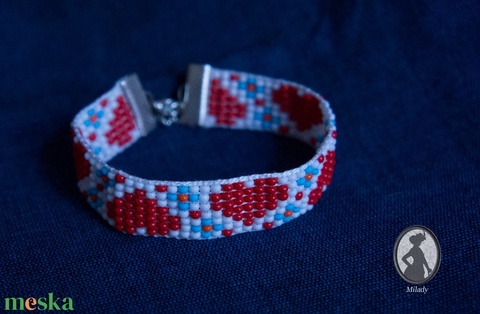 Szivecskés gyöngyszövött karkötő