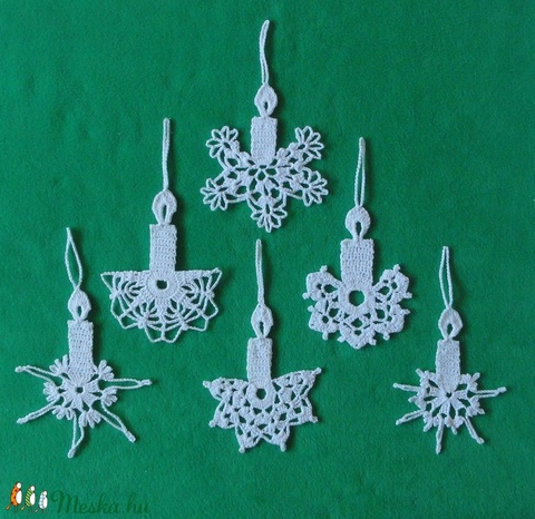 Karácsonyi lapos angyal és gyertya horgolt fenyő dísz