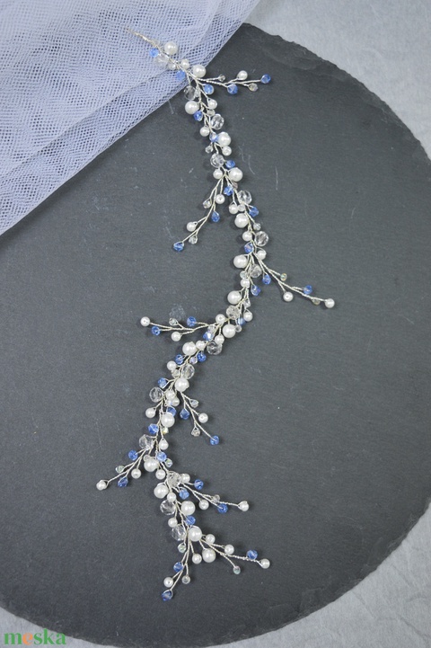 Menyasszonyi fejdísz kék swarovski kristályokkal