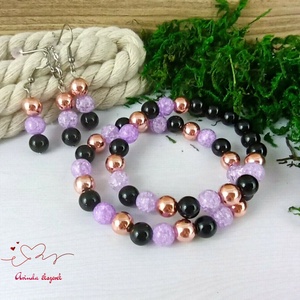 Aranyló napfény lila hegyikristály hematit ónix ásvány karkötő