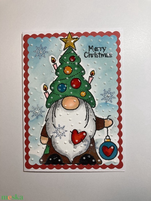 Gnóm karácsonyi képeslap, üdvözlőlap, ajándékkísérő, humor