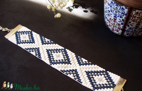 Sötétkék-ezüst gyöngyszövött karkötő