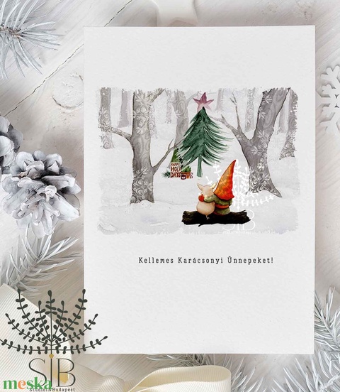 Téli manó karácsonyi képeslap, ünnepi üdvözlőkártya