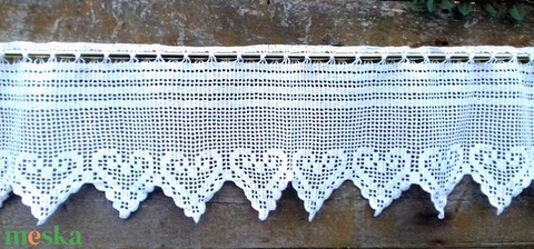 Hegyes szivek-horgolt,vitrázs fehér csipke függöny