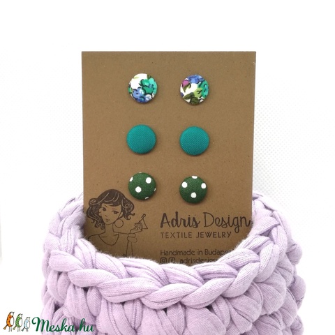 Micro textil fülbevaló türkiz, zöld színekben - 3 pár