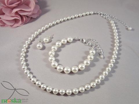 Egyszerű gyöngysor esküvőre Swarovski gyöngyből