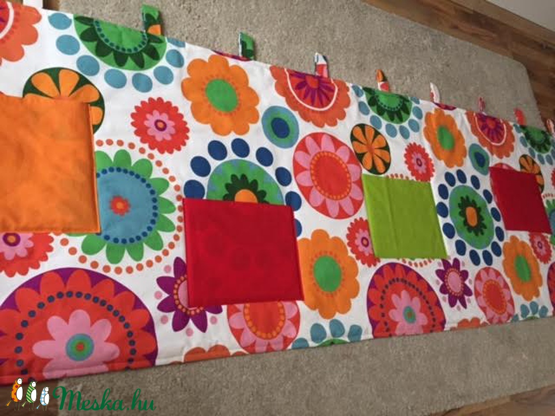 Ikeás falvédő, virágmintás, színes zsebekkel