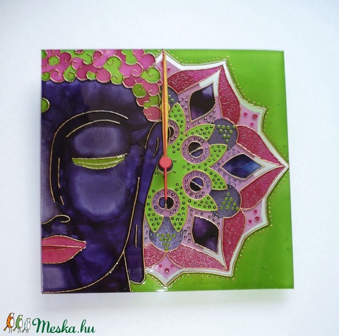 Múlt-Jelen-Jövő - Buddha Mandalával - egyedi festett üveg falióra