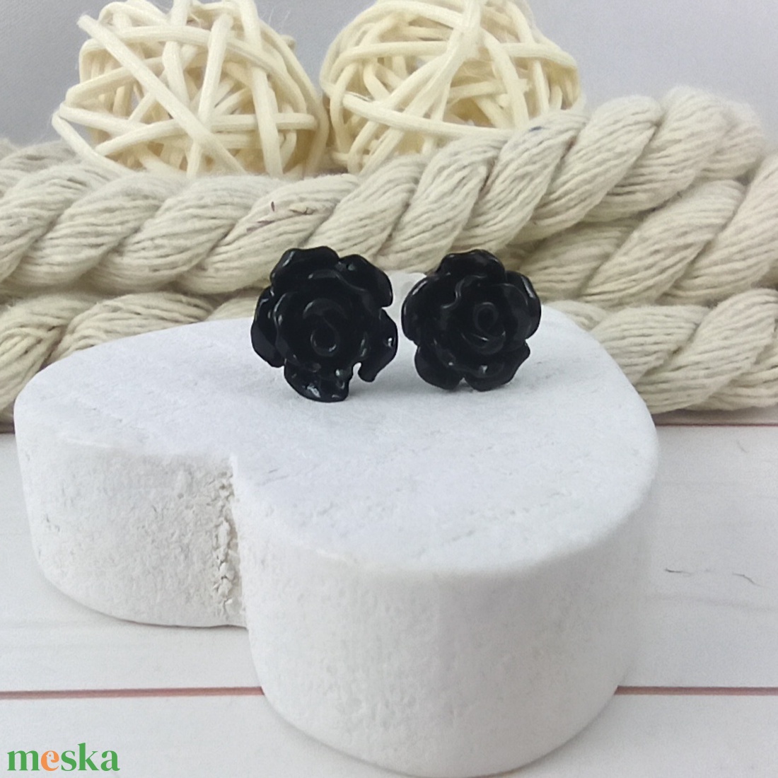 Apró fekete rózsás antiallergén nemesacél acél fülbevaló tavaszi nyári ajándék nőnek lánynak hétköznapra esküvőre