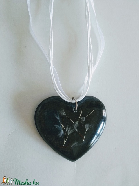 Pitypangos műgyanta nyaklánc szív medállal - pitypang - préselt növény gyantában - gyantaékszer - pitypang bóbitás