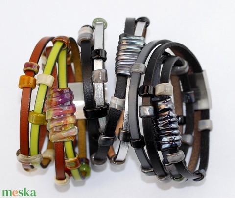 Jungle- többsoros bőr karkötő-egyedi üveggyöngyökkelkkel