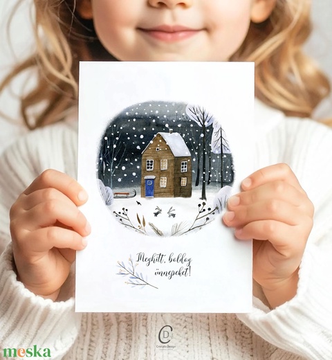 Karácsonyi képeslap, téli üdvözlőlap, erdei ajándékkísérő