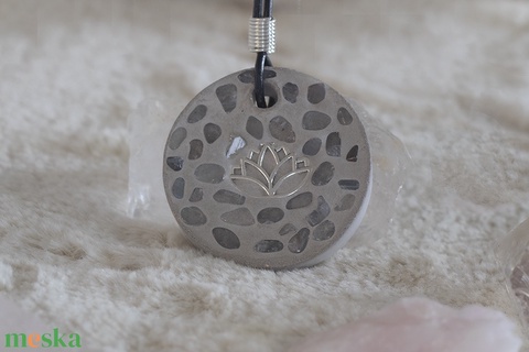 Így eljutottam egy másik anyaghoz, aminek a belsejében ugyanúgy nyomás alatt vannak a kvarckristályok, így létrejön a piezo elektromosság a kvarcokban, de sokkal környezetbarátabb lett így az elkészítése. Ugyanazon az elven működik, mint korábban, esztétikumban viszont eltér tőle mivel ez nem átlátszó. A korábbi orgonitokban látszódott a fémforgács, a mostaniak viszont sokkal homogénebbek. . A belső részen, a mátrixban rézforgács, kristályok (hegyikristály, rózsakvarc, fekete turmalin, sungit, hematit), réz spirál, atlantiszi védelmező szimbólum található, a felső részen pedig további szimbólumok, kristályok erősítik a medálokat, tértisztítókat.