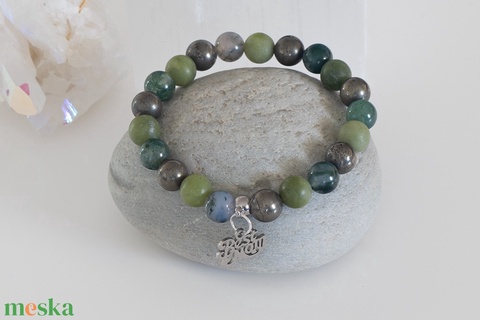 Természet Hangja Ásvány Karkötő - Mocha Achát, Pirit, Jade Ásvány Karkötő - Lélekhangoló ásvány karkötő