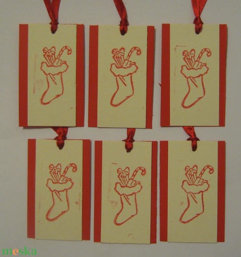 Mikulás csizma bélyegzőmintás ajándékkísérő - Mikulás-csomaghoz -családi és céges megrendelésre - ajándékkártya - egyedi