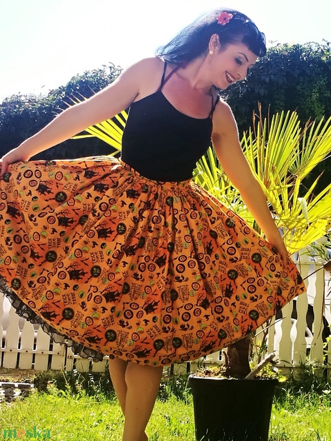Halloween Rockabilly szoknya cicás, boszorkányos