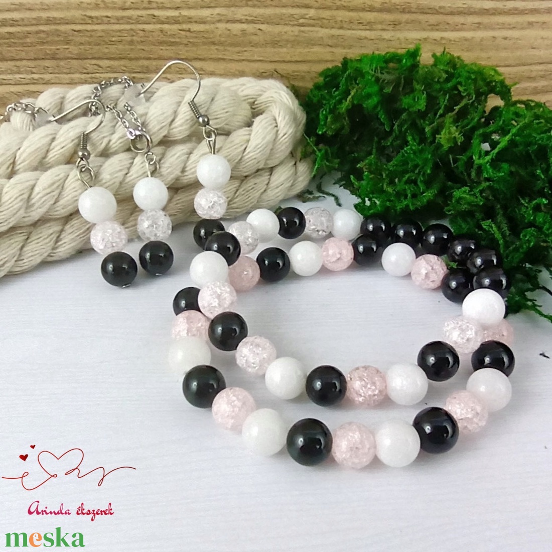 - Anyaga: jade, ásványgyöngy, ásványgolyó, ásvány, hematit, hegyikristály, roppantott, pink, rosegold, fehér