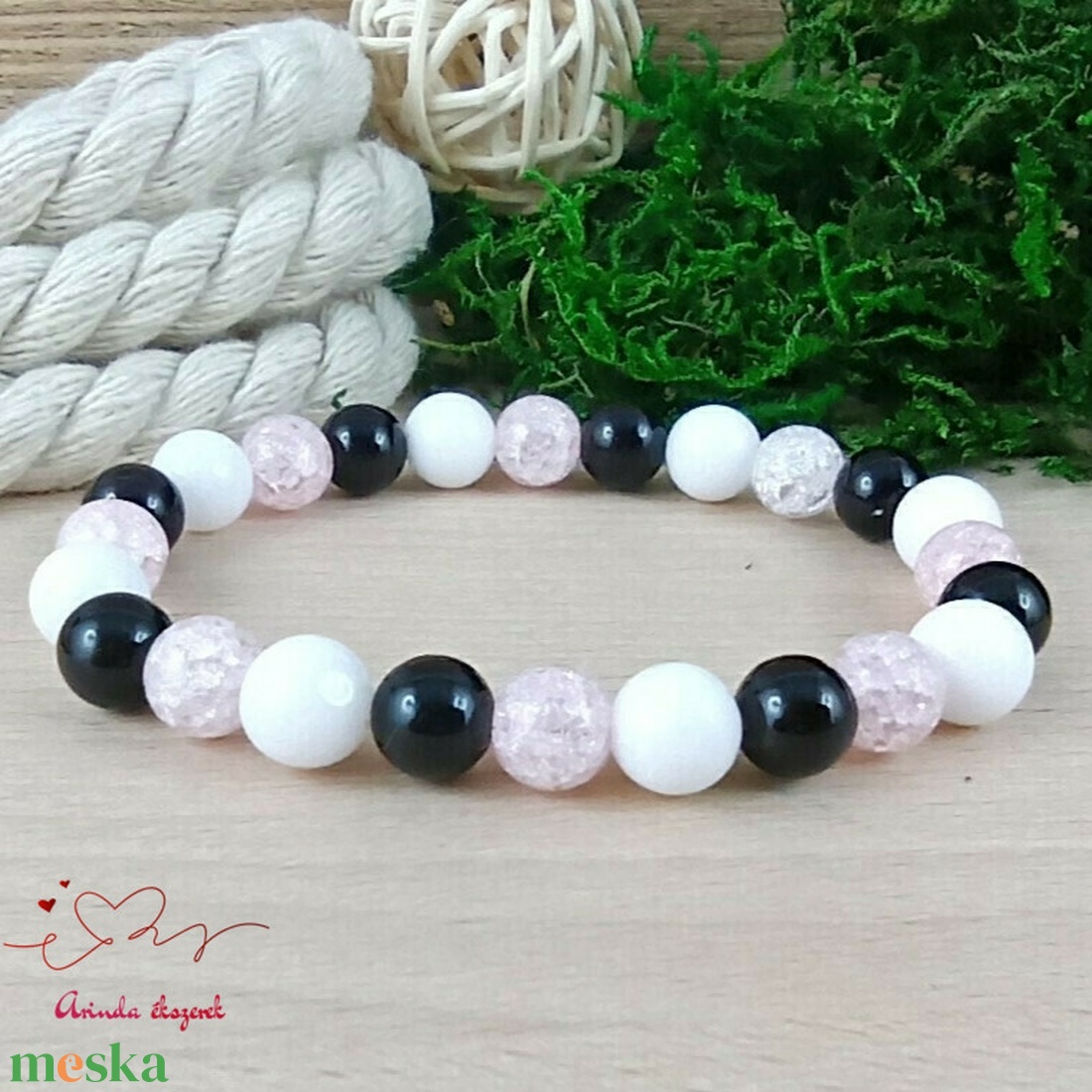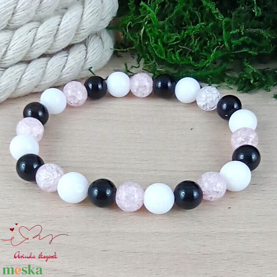 Pozitív gondolatok rózsaszín hegyikristály jade ónix ásvány karkötő