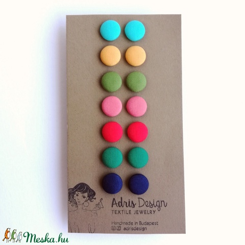 MINI textil fülbevaló csomag, Élénk tavasz színskála - 7 pár