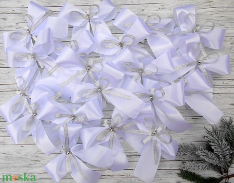 Fehér-ezüst színű csipeszes masni, karácsonyfára