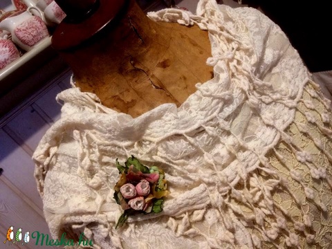 AKCIÓ!!!! Romantikus kis rózsacsokor csipkével-bross