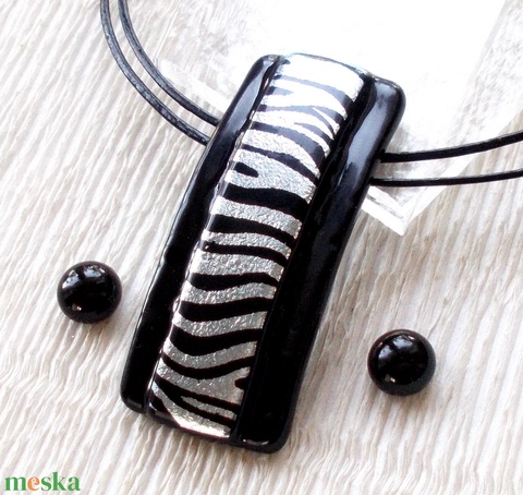 Ezüst-fekete zebra mintával, saját tervezésű hajlított ékszerszett.