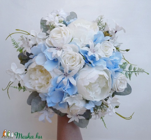 Kék hortenziás menyasszonyi csokor