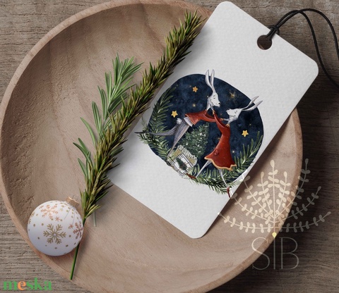Ajándékkísérő, karácsonyi nyuszis ünnepi ajándékkísérő, ajándékátadó